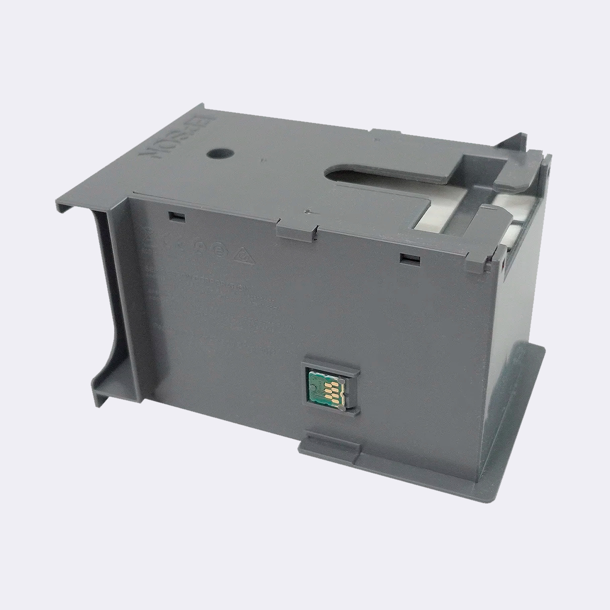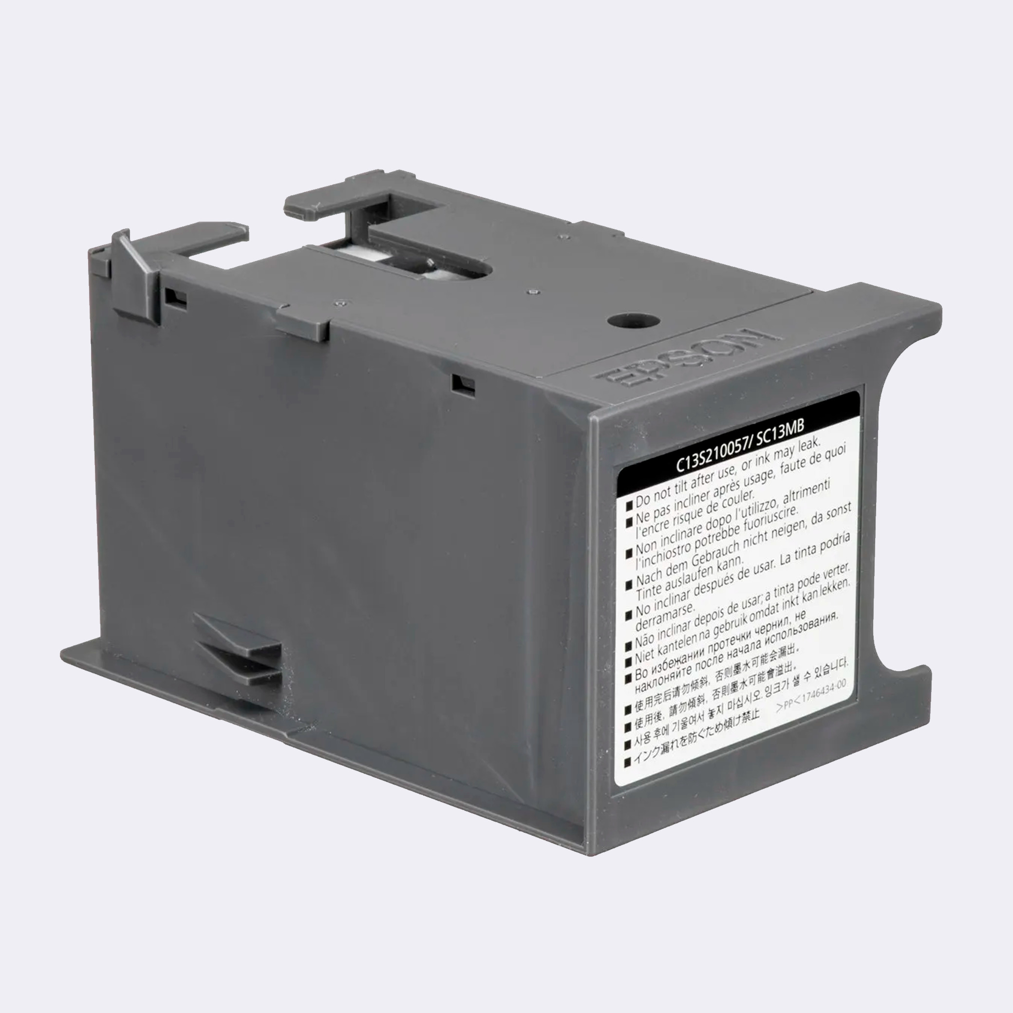 El Tanque de Mantenimiento de Tinta para la impresora Epson SureColor F570 almacena la tinta que se vacía del sistema durante la limpieza del cabezal de impresión. Su impresora y el software le permitirán saber cuando es necesario reemplazar el Tanque de mantenimiento.